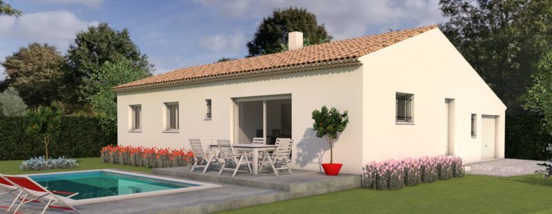 Maison traditionnelle de plain pied avec terrasse ombragée